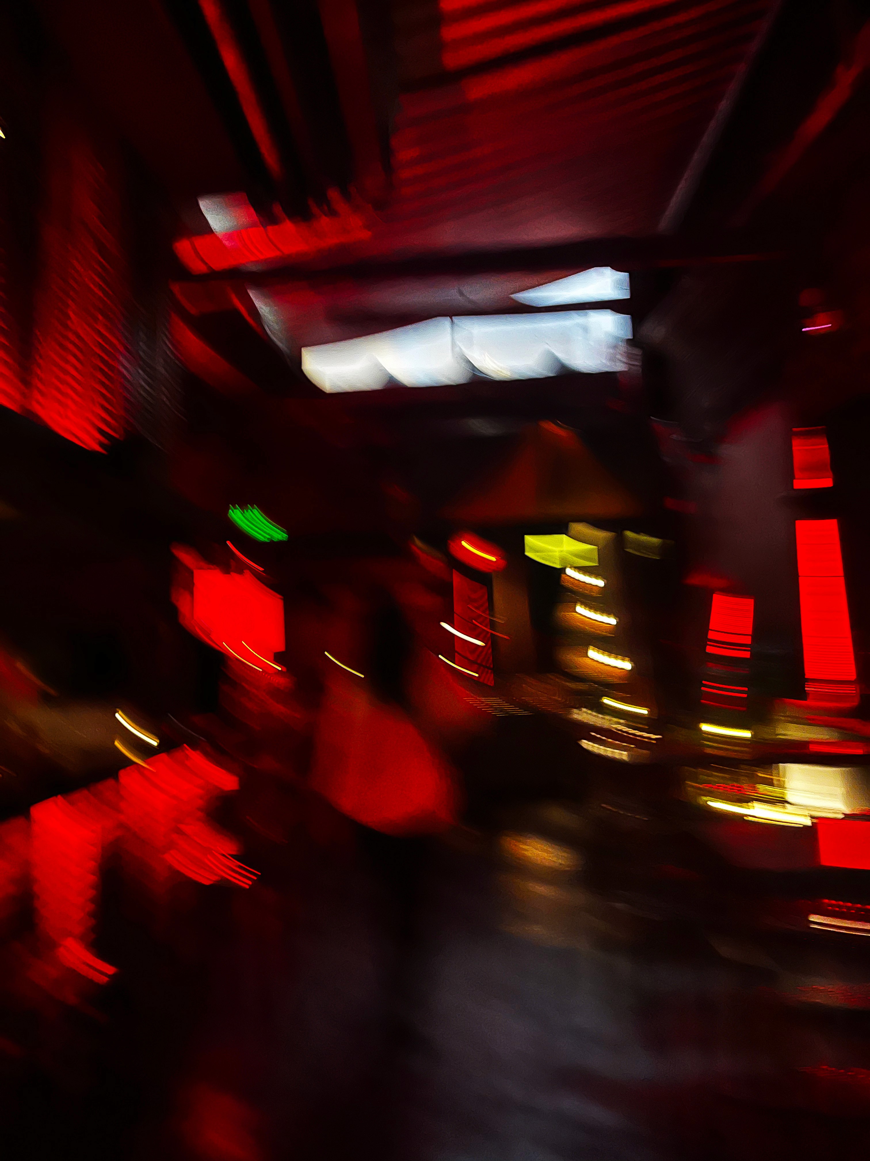 Las series dedicadas a bares y cruces de calles recortan instantes mínimos: un bar en San Telmo, otro en Palermo, un detalle de Alem, ventanas encendidas al fondo. No hay anécdota explícita, pero la escena siempre sugiere algo antes y algo después, como si cada cuadro fuera el fotograma de una película que solo el espectador conoce.