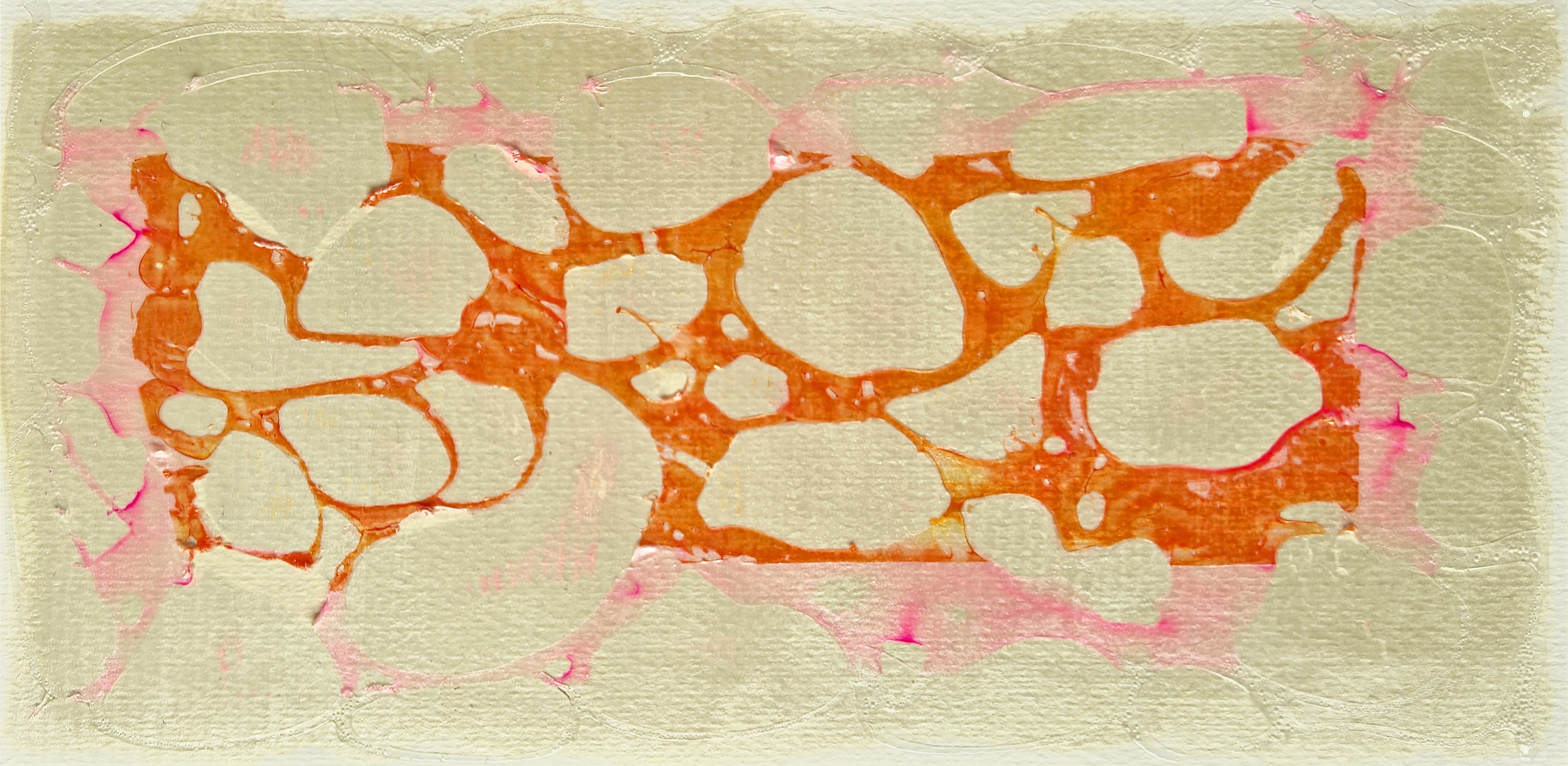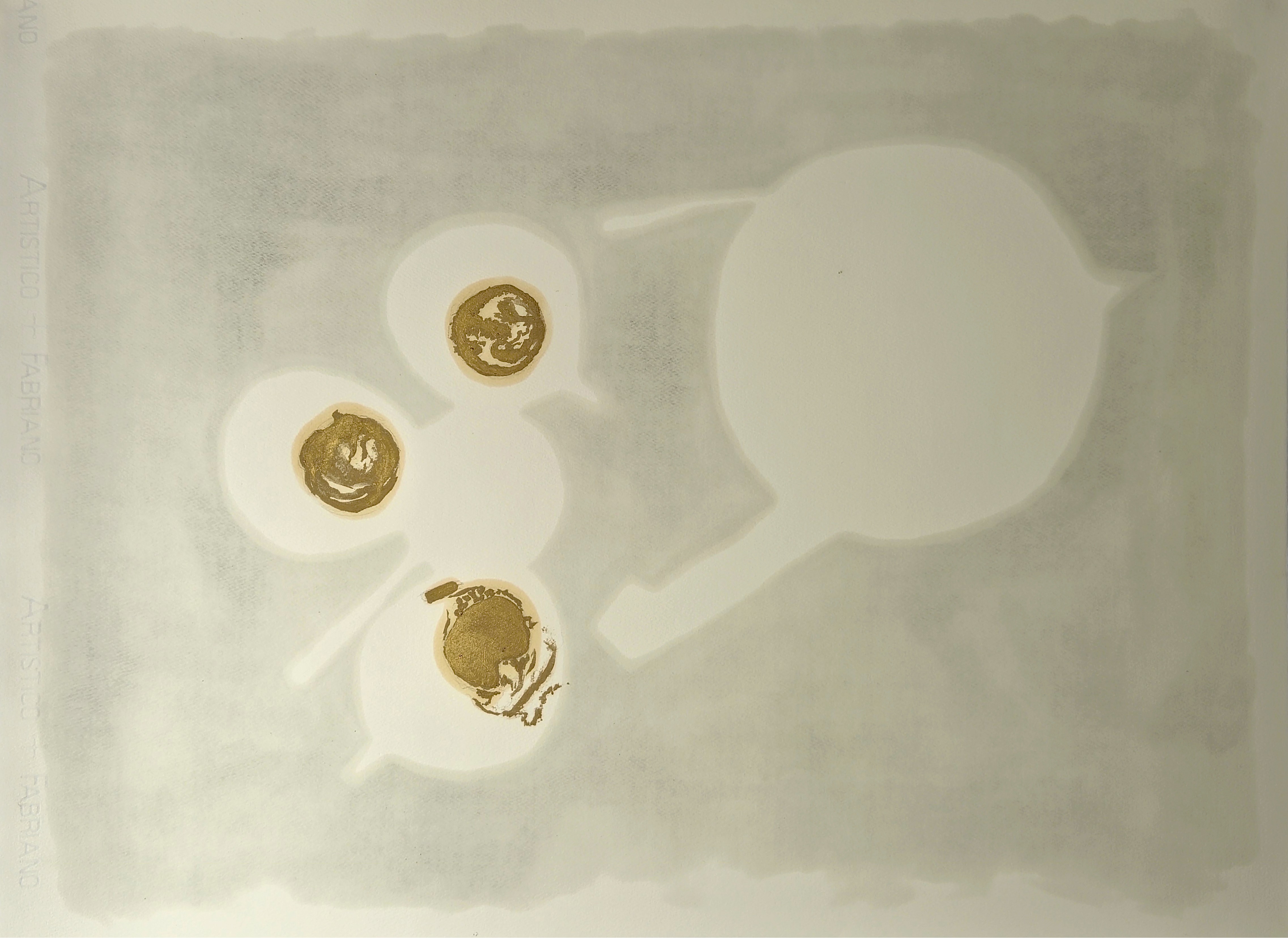 Hay una operación muy precisa en esos cuadros: trabajar el papel por ambos lados. Las manchas de óleo penetran la fibra y generan una imagen fantasma en el dorso. De un lado, la escena está definida; del otro, aparece un registro más abstracto, hecho de halos y contornos. Esa doble condición del soporte funciona casi como declaración de principios: la obra no termina en lo que vemos frente a frente, también se construye en lo que se filtra, en lo que queda del otro lado, en aquello que no se muestra del todo pero insiste.